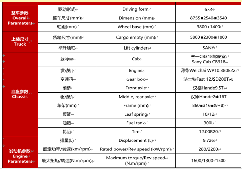 experience. Special Weichai engine for engineering dump truck is adopted,